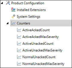 In the default configuration, some counters are already created in the system and can be exposed as process points to clients. Some examples are the count of active and acknowledged alarms (ActiveAckedCount), the maximum severity of active and acknowledged alarms (ActiveAckedMaxSeverity), and so forth.