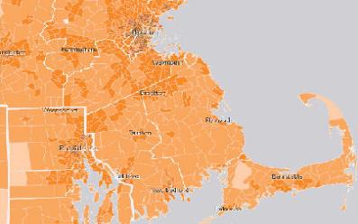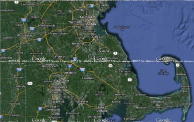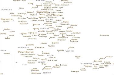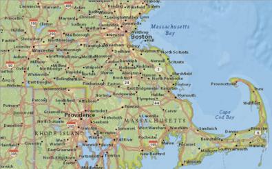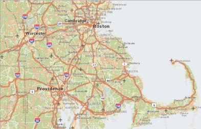 The following examples show southeastern New England at zoom level 9.