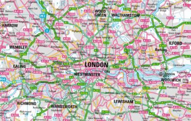 Collins Bartholomew Style - A digital map style unique to the UK that displays selected region as a digital street map.