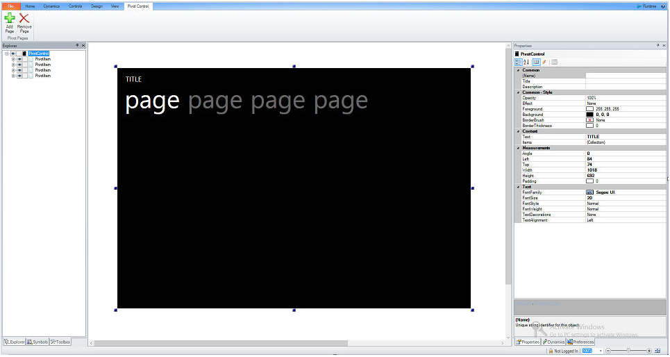 Each individual page is considered a Pivot Item within the Pivot Control Explorer.