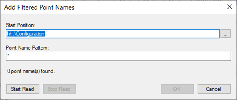 As the last step, click on the “Start Read” button – it starts browsing the server specified in the start position and inserts all data point names that complies to the “Point Name Pattern”.