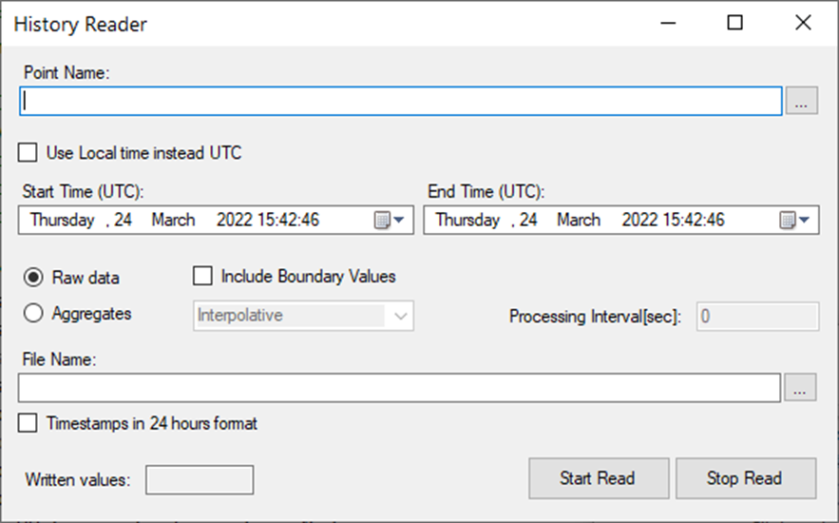 o Allows to read historical values and aggregated values from any plant historian server and stores results in a text file.