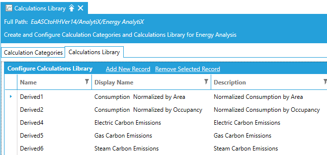 The Calculations Library is a set of predefined derived energy calculations that are installed with Energy AnalytiX. End users can define more and the Calculation Library enables the definition of the required energy calculations in a template manner in order to accelerate associating the calculations to actual energy assets.