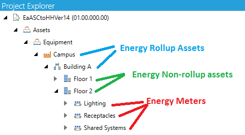 An energy asset aggregates and rollups consumption data from meters or other energy assets.