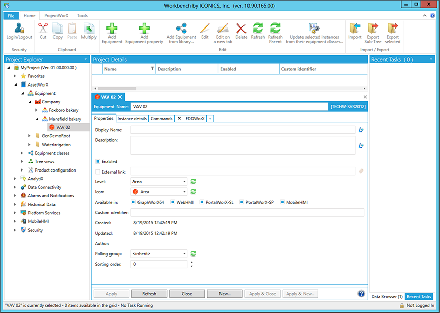 The FDDWorX tab will then appear within the asset properties window in the Project Explorer, as shown below.