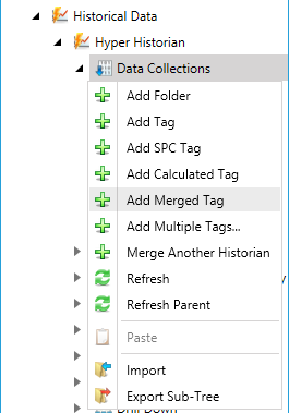 Right-click the Data Collection node in the navigation tree, or any of its sub-nodes, and select Add Merged Tag, as shown in the figure below.