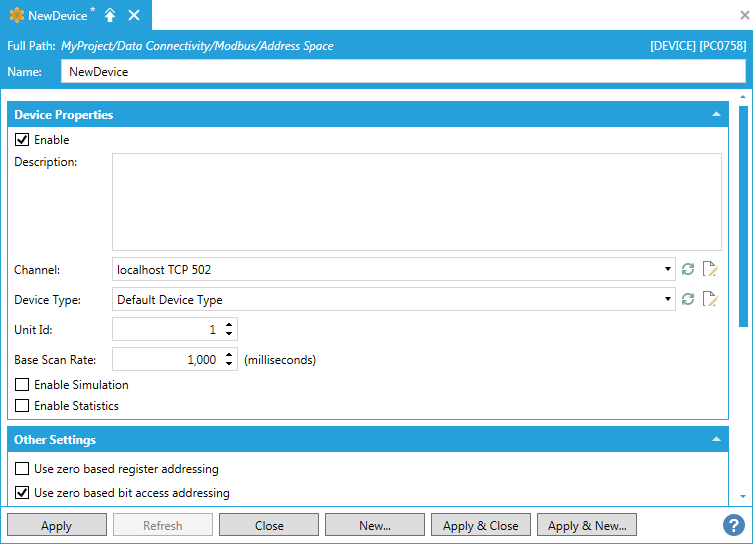 Enable Simulation - Click this checkbox if this device should be considered as simulated only.