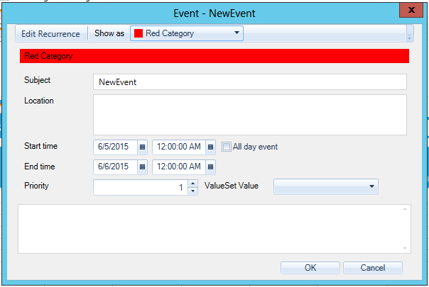 - To repeat this event, click Edit Recurrence. The Edit Recurrence dialog box appears.
