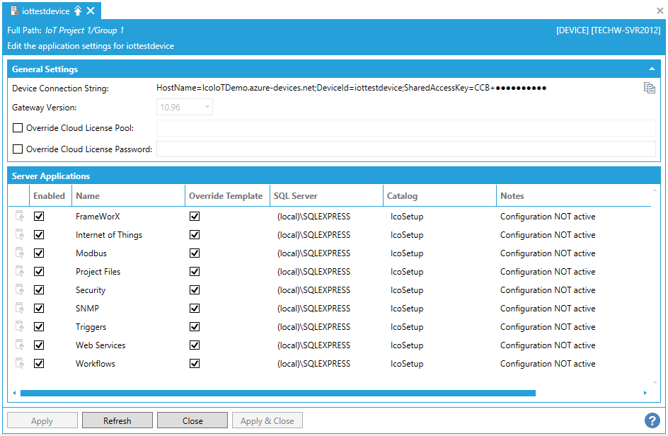 Device Connection String -Enter the device connection string from your cloud service provider (e.g. Azure) in the text entry field. You can also click on the