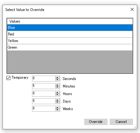 Click on the Override button to select another Value. You can also override an event for a certain period of time.