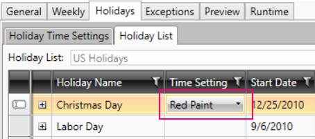 Click on the Holidays tab in your Schedule control to determine what to do on each holiday date.