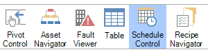 In GraphWorX64, click on the Controls tab in the ribbon, and select Schedule Control.