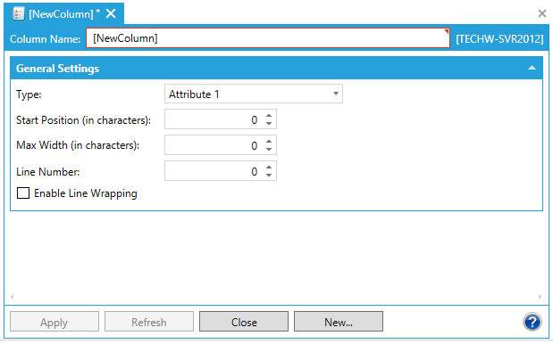 Column Name - Enter the name of the column. This will be the column name used in the logging database and the column heading when printing.