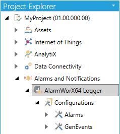 AlarmWorX64 Logger in the Project Explorer