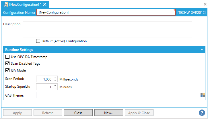 If you have multiple alarm configurations, you can specify a default configuration that will be used for the active database. If you wish to make this the default configuration for the database, enable the Default (Active) Configuration check box (optional).