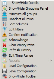 Right-click a selected alarm and select the
