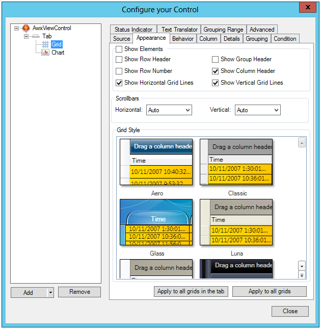Appearance Tab for a Grid