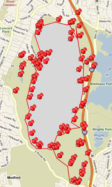 Routes imported as Polygons. If a route is a closed loop, you might want to import it as a Polygon. Note that the polygon is grayed; as a result, no map features are displayed inside the loop.