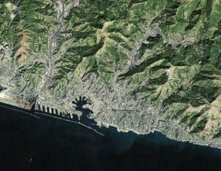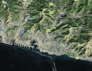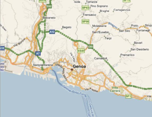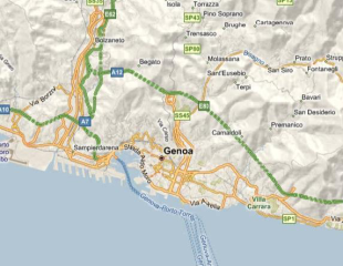 The following examples show Genoa, Italy, at zoom level 12 displayed in each of the four map types.