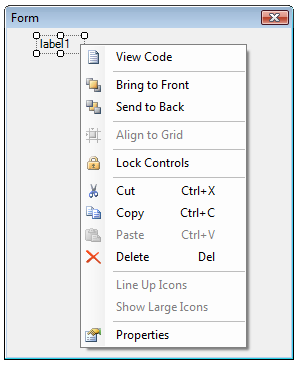 If you add "non-visual" components to a form, such as a Timer or an ImageList, an extra split window will appear at the bottom of the form editor containing icon representations of those non-visual components. Selecting Line Up Icons arranges all of the icons in the bottom window in a straight line. |
