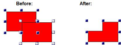 Union - Joins the objects together as one and removes the lines where they were joined.