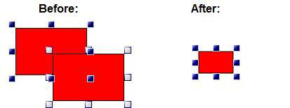 Intersect - Joins the objects together where they intersect and displays only the intersected section.