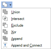 Use the Combine button on the 2D Home ribbon to combine one or more objects to become a more complex shape. In order to enable this button, multiple objects must be selected and touching. This feature works best if the objects you are combining overlap. The menu options on the Combine menu are shown below.