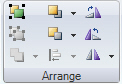 Arrange section on the Home ribbon you can do the following with objects in your display: