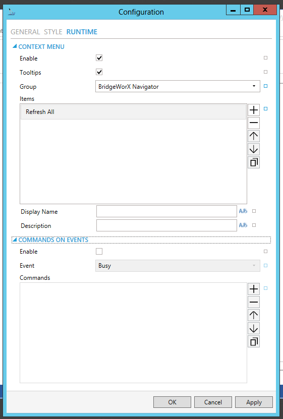BridgeWorX64 Navigator Configuration Window - STYLE Tab