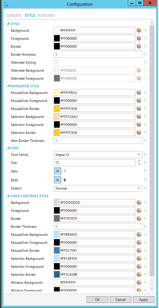 MouseOver Border - Border brush of item under mouse cursor. You can enter a color code (if known) in the text entry field or click on the