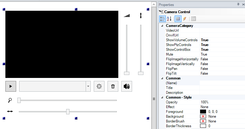 ShowPtzControls - In Runtime mode, 'True' means the Pan/Tilt/Zoom controls will be visible with the video feed.