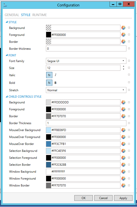 Border - Border brush of child controls. You can enter a color code (if known) in the text entry field or click on the