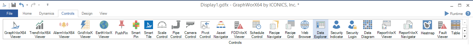 To insert a Data Explorer into a display, begin by selecting the Controls tab. This will expose all of the available controls, including the Data Explorer.