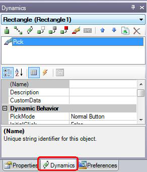 Some dynamics are a set of action classes that you assign to objects in a GraphWorX display. These dynamics become available for you to add to a GraphWorX64 display only when an object is selected.