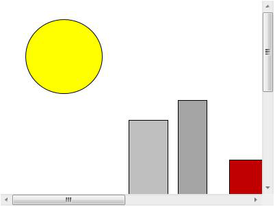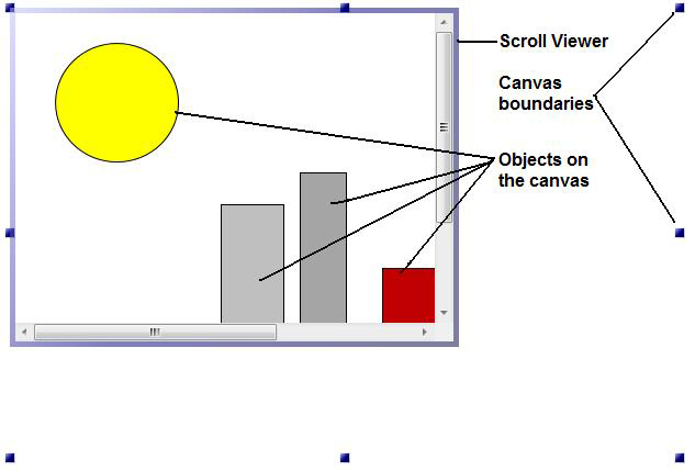 On the work surface, drag the cursor to create a rectangle the size that you want the scrollable area to be. When you release the mouse button, the scrollable area displays as does the canvas, which has a default width and height of 800 and 600 pixels respectively. You can change the Width and Height properties for the Canvas and for the Scroll Viewer.