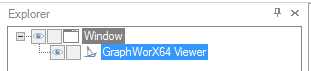 This panel is composed of a GraphWorX64 Viewer object within a Window object, which show up in the Explorer like this: