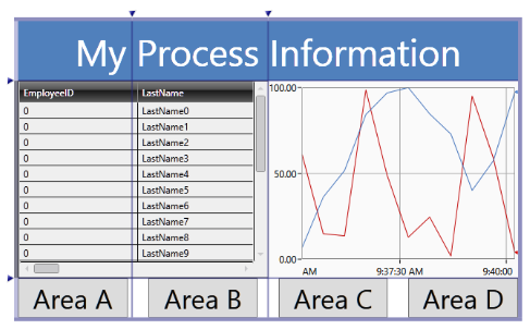 When part of a display needs to support a variable viewing area in Runtime Mode, the split panel provides an excellent method of organizing this type of content. The vertical split panel places two grids side by side and includes a vertical splitter. You can drag this splitter left and right in both Configuration Mode and Runtime Mode to adjust the relative sizes of the grids that this split panel contains. |