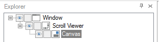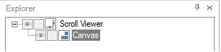 The Scroll Window panel is composed of a Window object, a Scroll Viewer object, and a Canvas object, which show up in the Explorer like this: