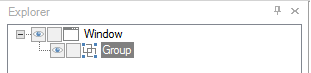 The Window panel is composed of a Window object and a Group object, which show up in the Explorer like this: