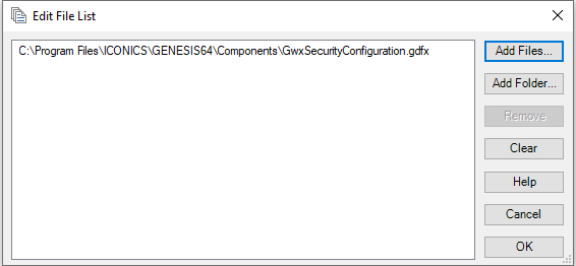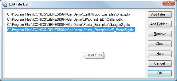 1. From the Edit File List dialog window, click Add Filesto browse for the .gdfx file from the stored in the following location:
