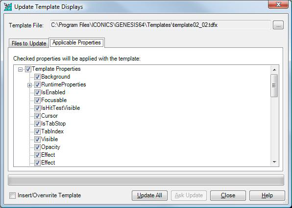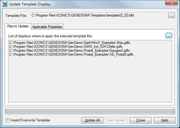 6. On the Update Template Displays dialog box, if you wish to overwrite the existing templates in all of the files and folders in the list, then select Insert/Overwrite Template check box.