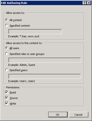 Modify the permissions as you see fit for your server. In order to publish from GraphWorX64 to this directory, you must give the user(s) at least write permission. Click OK when you are finished. The rule should now appear in the list of the WebDAV Authoring Rules.