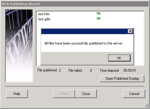 Click Publish to start publishing your files. You should get a summary of the files status. Click the “Open Published Display” button to launch Internet Explorer to view your published page.