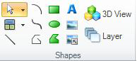 This topic describes the tools in the Shapes section of the 2D ribbon's Home tab. It includes the following topics: