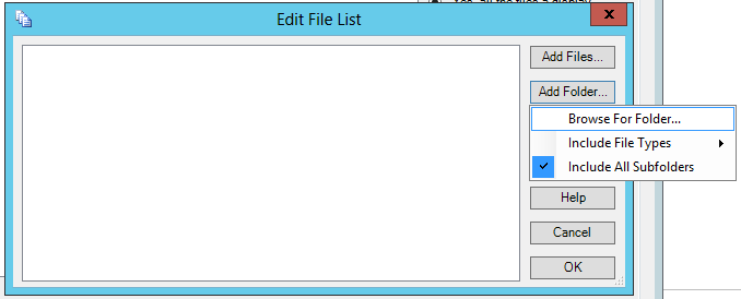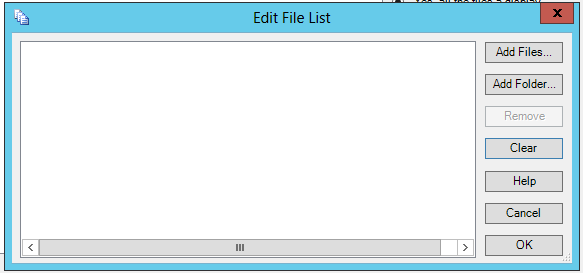The Edit File List window, as shown below, will open. You have the option of either adding files individually via the Add Files... button or adding specific folder via the Add Folder... button.