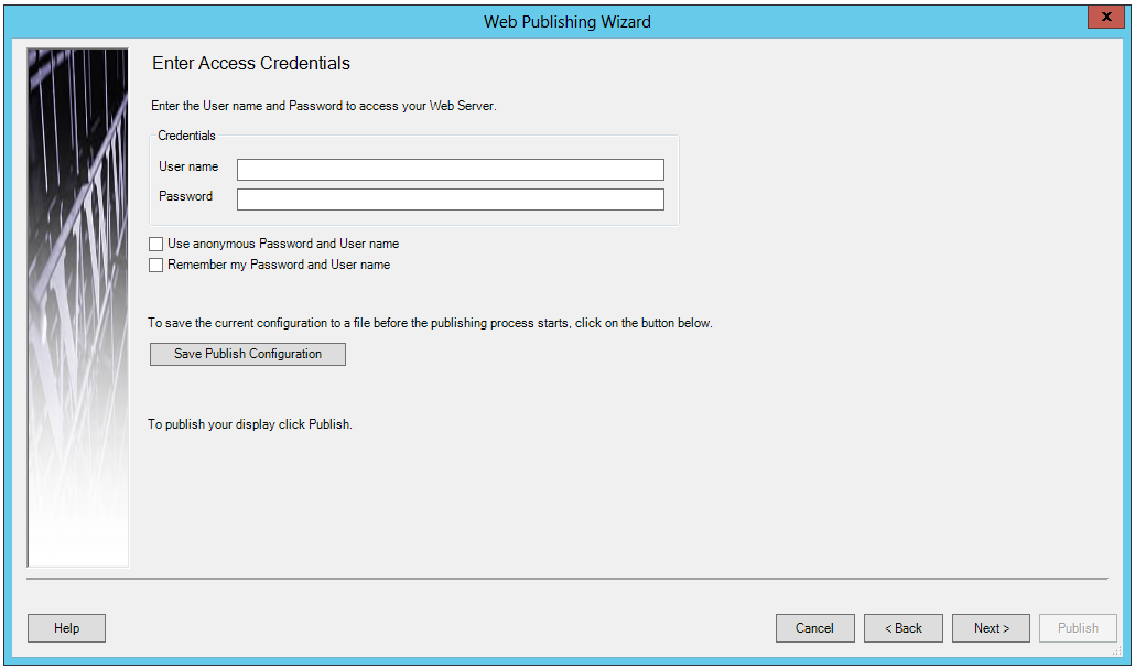 Enter Access Credentials Section of the Web Publishing Wizard