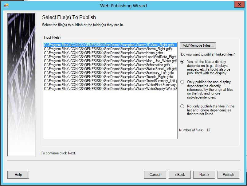 Populated Select File(s) To Publish Section of the Web Publishing Wizard