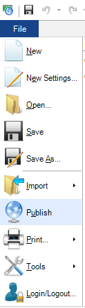 - Select Publish from the GraphWorX64 File menu, as shown in the figure below.