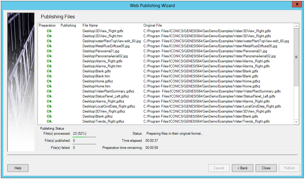 Review Files(s) To Be Published Section of the Web Publishing Wizard