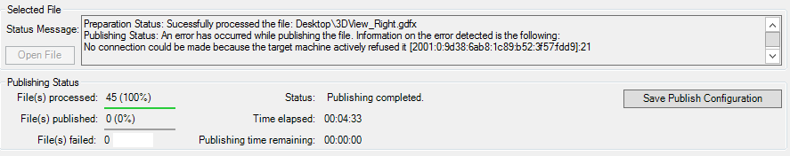 Similar to the previous wizard screen, you can also opt to save the current configuration to a file, now after the Publishing process, by clicking on the Save Publish Configuration button.